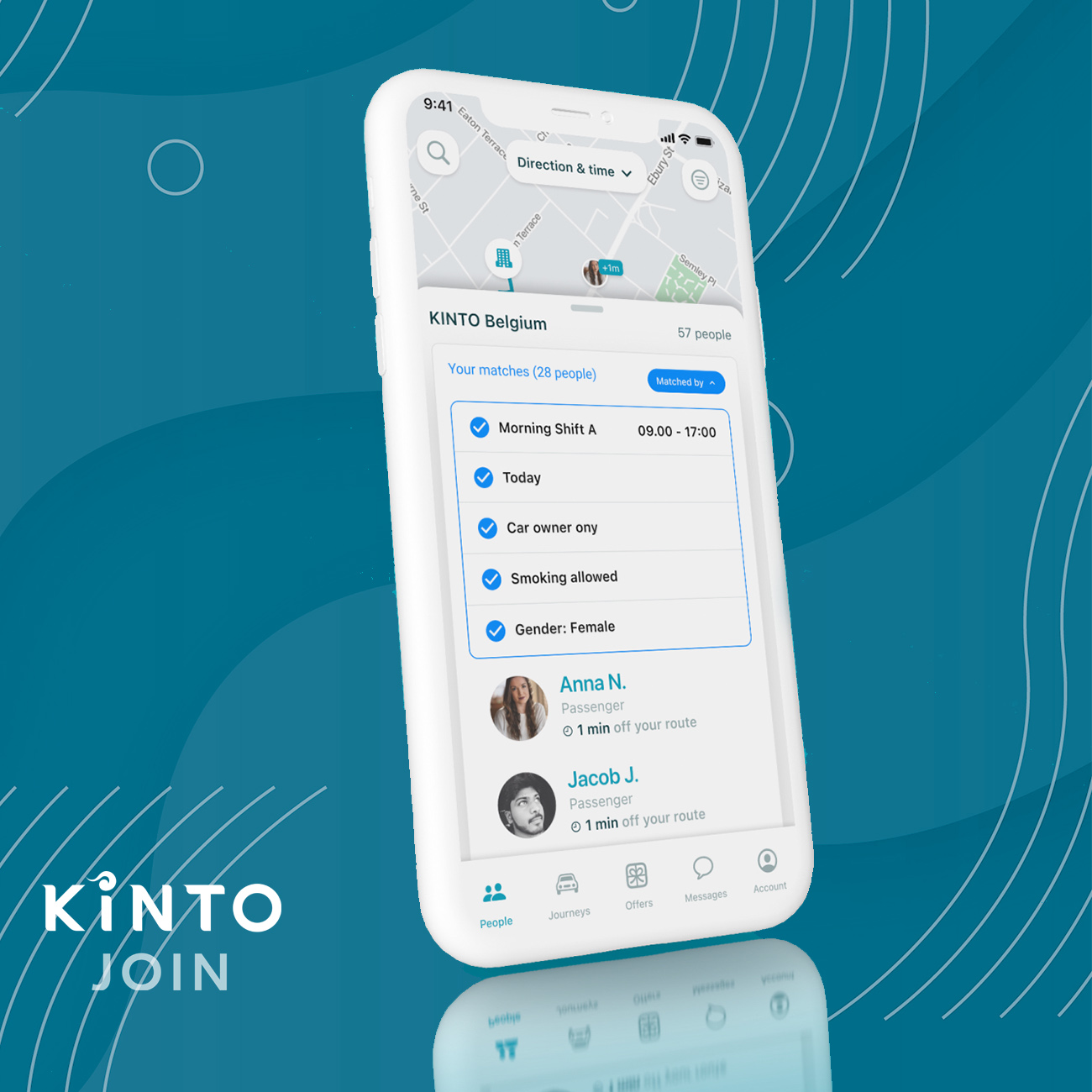 A typical app user, a passenger, would first join the closed community of sustainable commuters created for their company. Upon registration, they enter their working schedule and the address where they want to be picked up to join the journey to work. This does not necessarily have to be their home address. It can be any address along the route that they want the driver to pick them up. This way, KINTO Join is contributing to the app user’s safety and privacy.